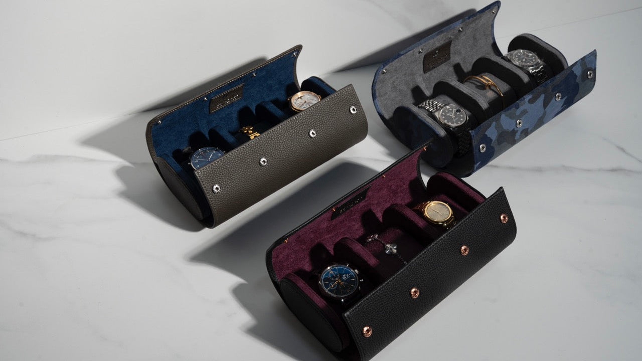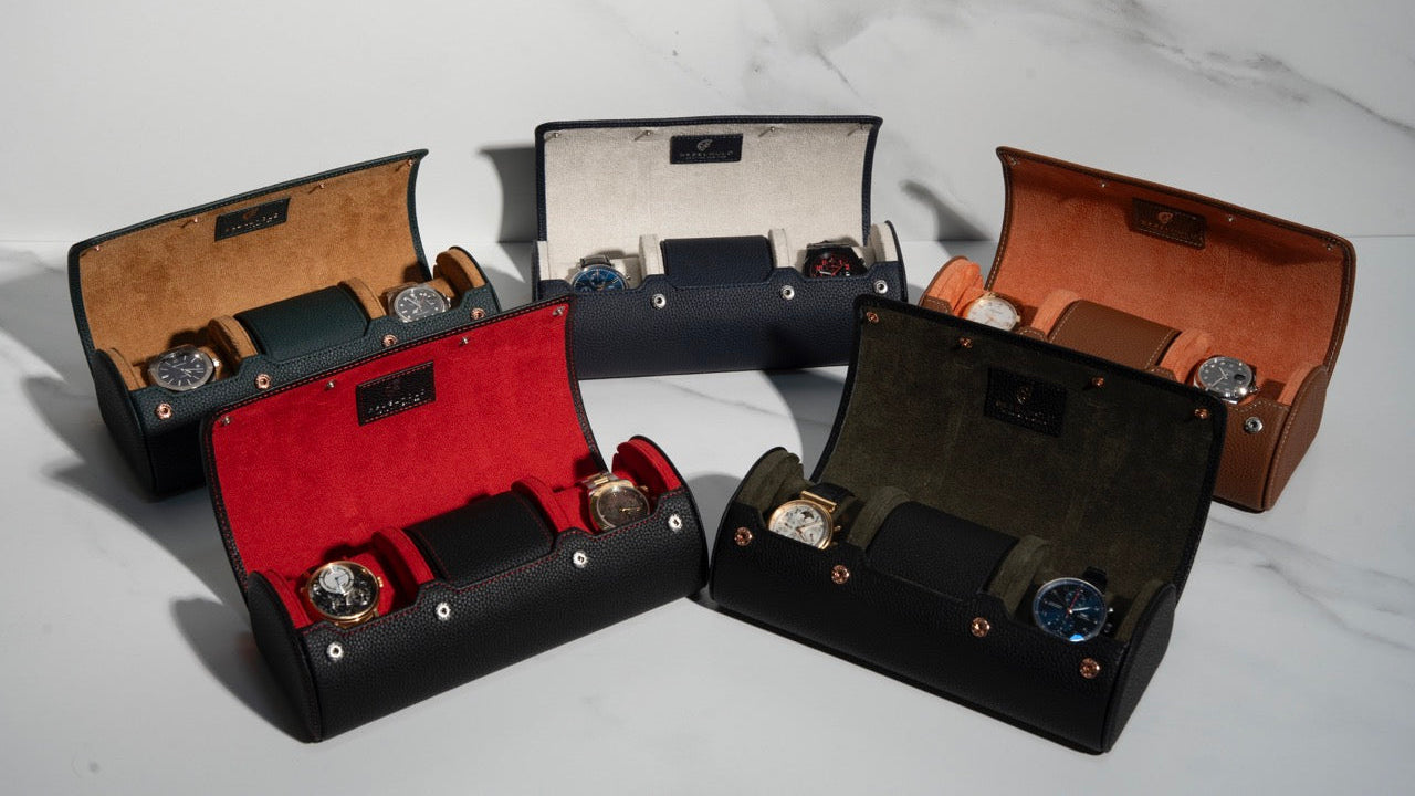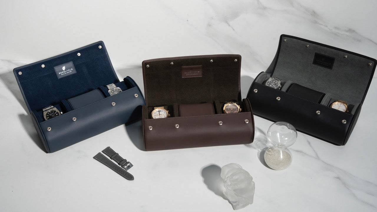BezelHold’s Watch Rolls collection features travel-ready and home-friendly leather cases engineered for safety and durability. Crafted with soft microfiber interiors, our rolls cradle your watches gently, protecting them from scratches while offering structure and elegance. We offer several models — like The Capsule, The Hat-Trick, and The Elite — each built to fit up to three watches comfortably. These rolls are ideal for globetrotting collectors, frequent travelers, or simply someone who wants a beautiful way to store their watches without sacrificing portability. With premium leather finishes and a design-first ethos, these cases reflect our commitment to functional luxury.