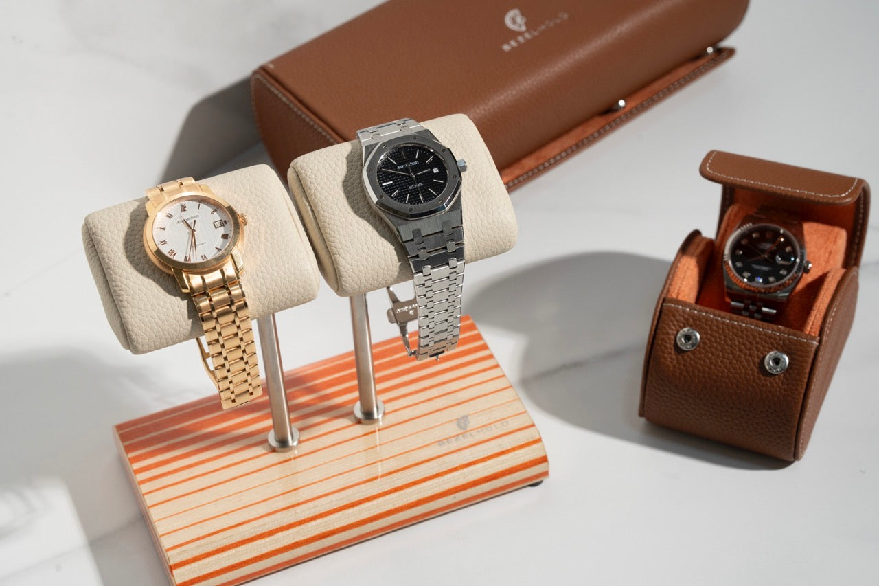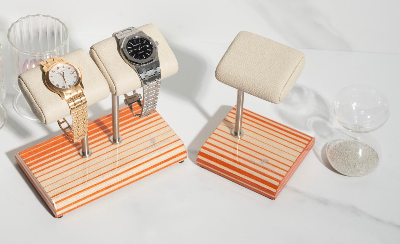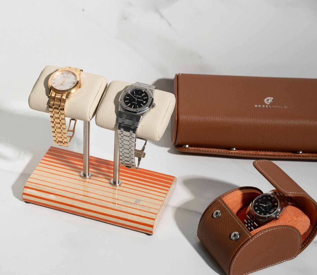 The Duet securely holds two watches, serving as both a display and a protective showcase for your most prized possessions.