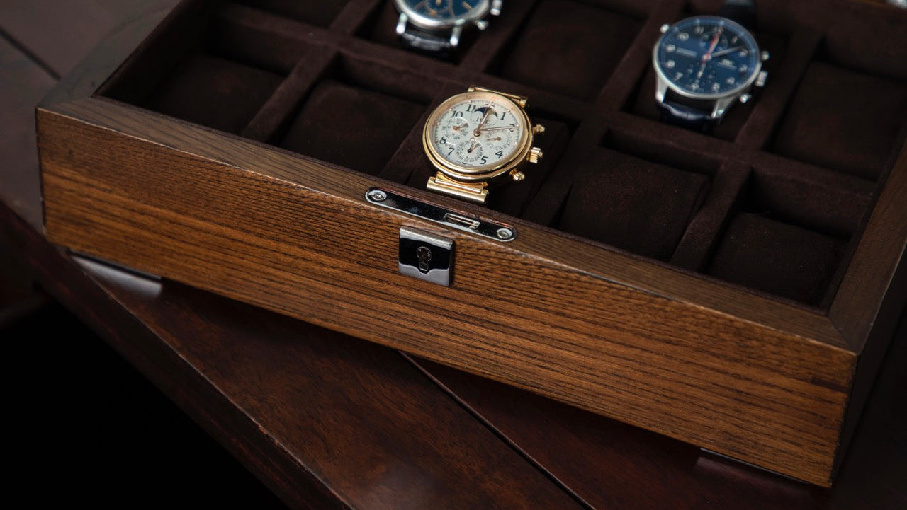 - Chrome finish lock and key function—ensures watches are only accessible by the collector.