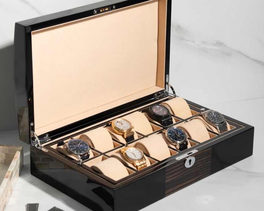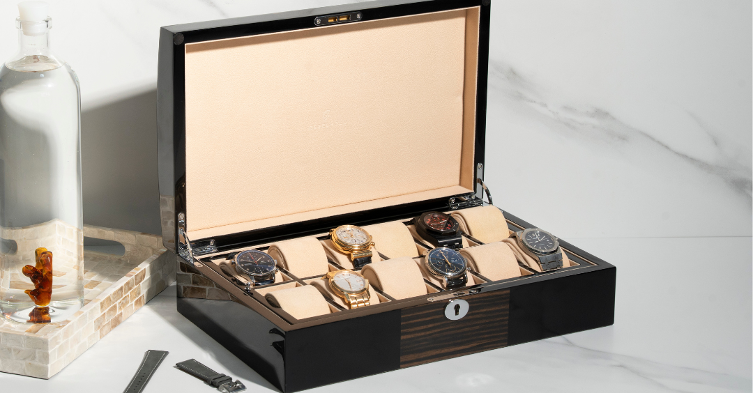 - Chrome finish lock and key function—ensures watches are only accessible by the collector.