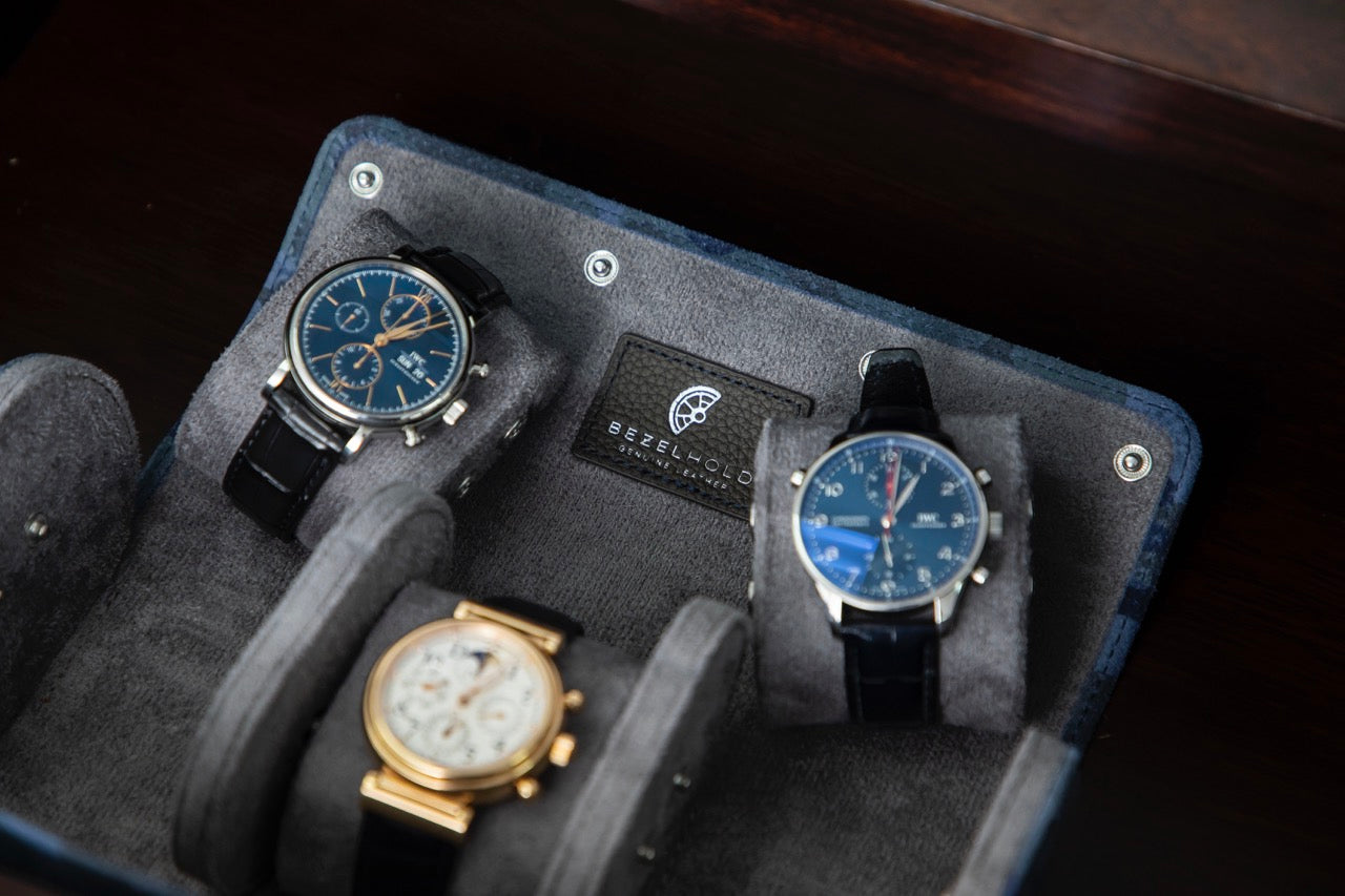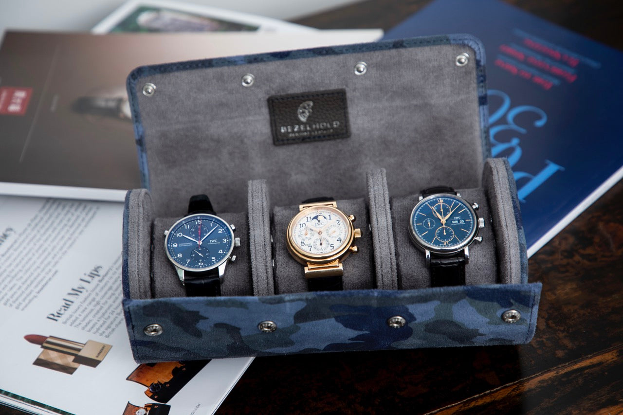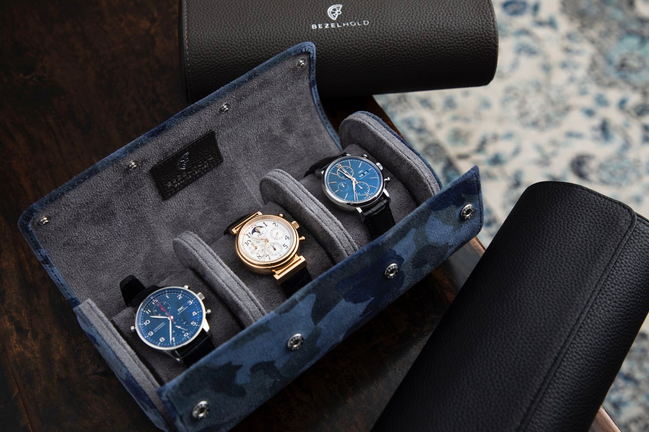 The Hat-Trick securely holds three watches, whether at home or on the go.