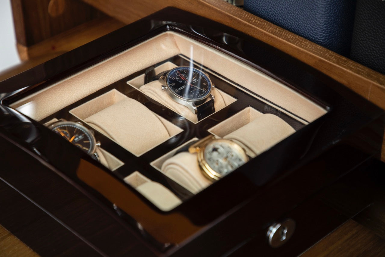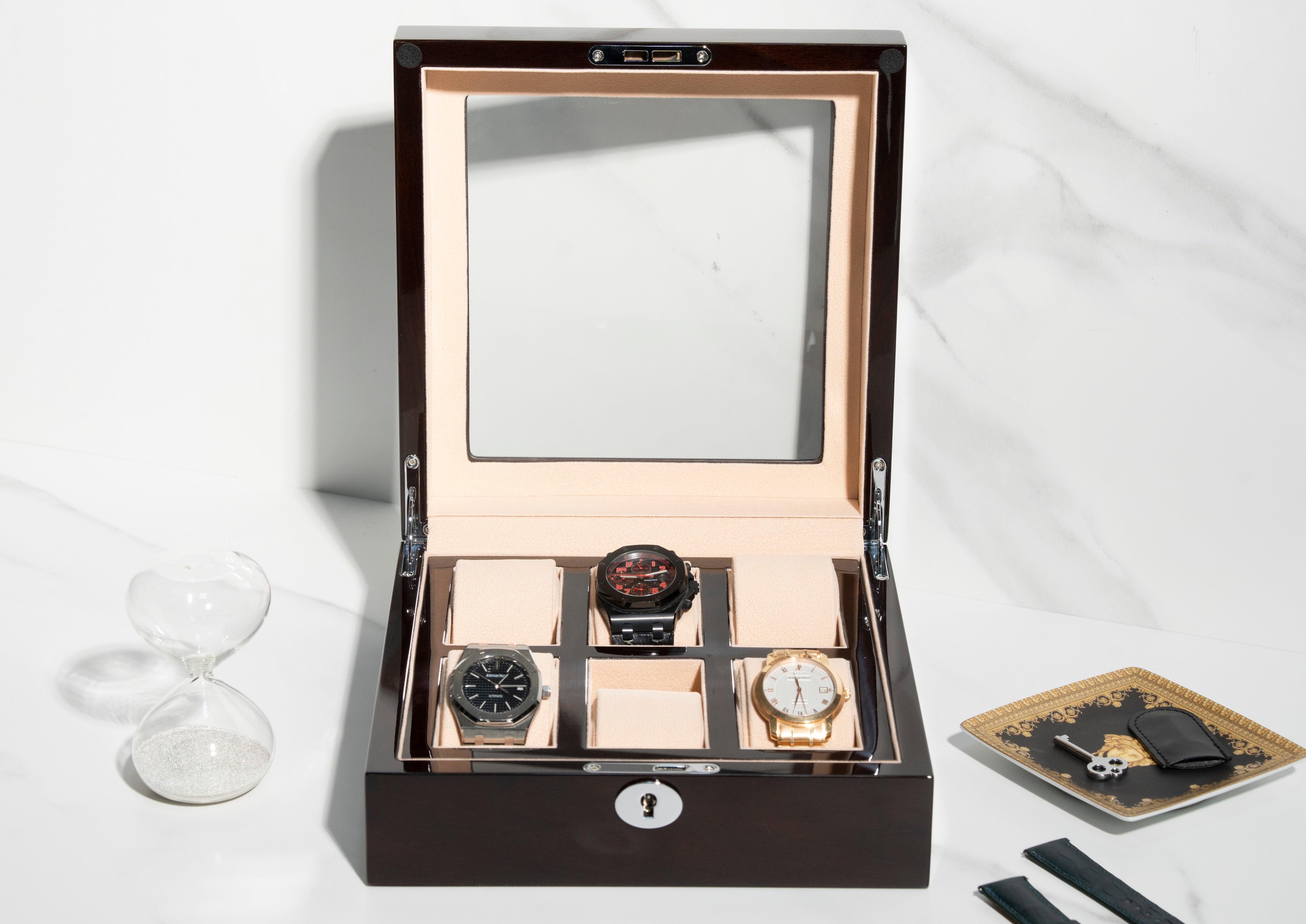 The Panorama securely holds up to six watches, featuring a curved-glass covering for admiration.