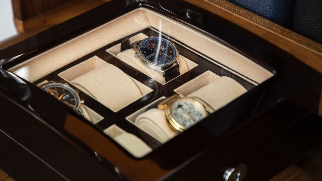 - Chrome finish lock and key function—ensures watches are only accessible by the collector.