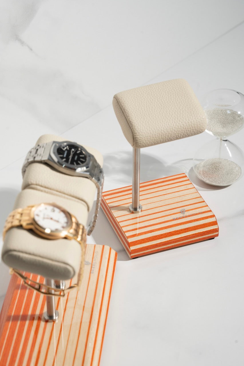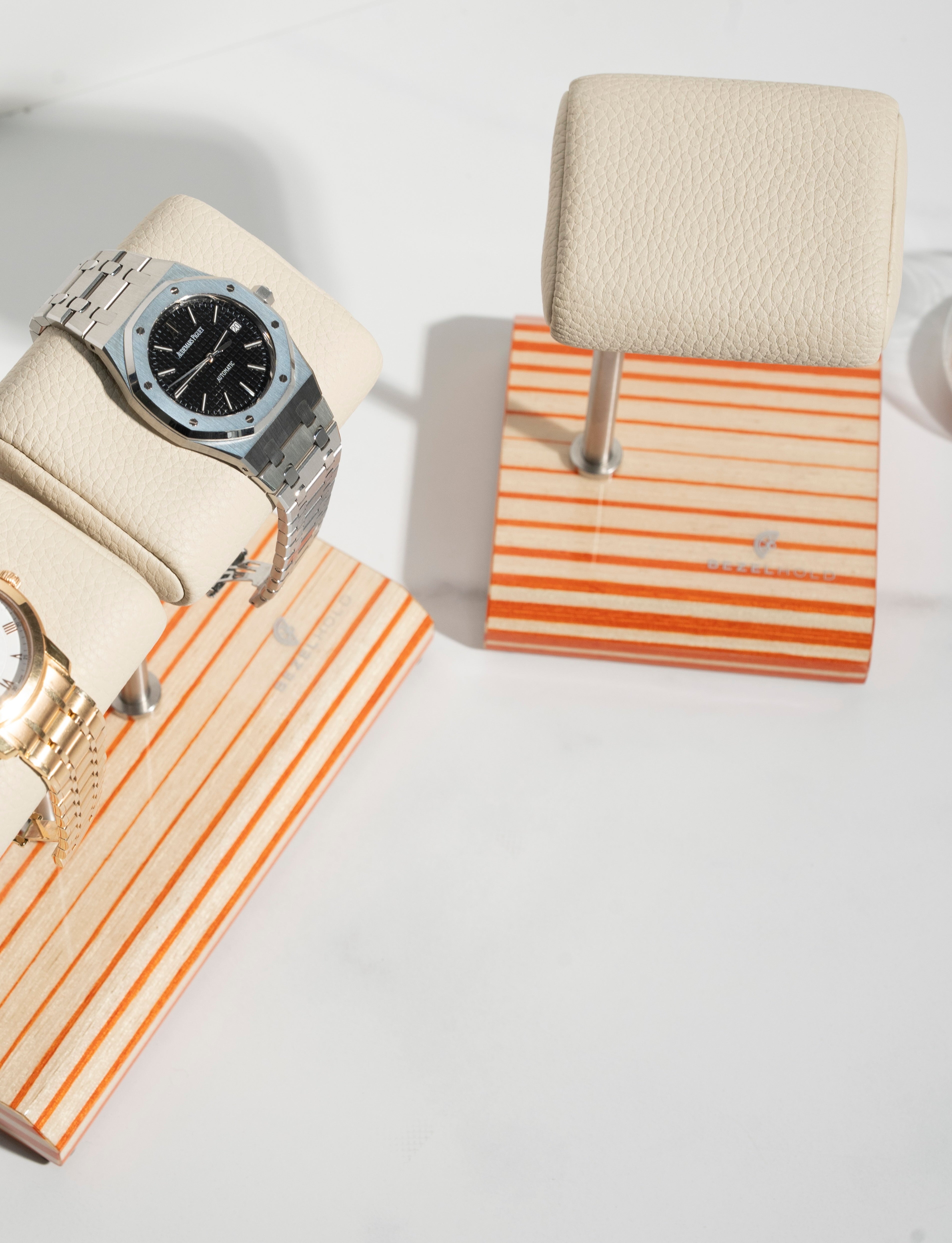 A beautiful canvas for the collector, The Solo is designed to display and protect your watches. With each detail thoughtfully refined, it truly is one of the most desirable accessories for enthusiasts. It features pebble grain leather pillows sourced from the finest tanneries, a high-gloss polished base, and matte silver stands.
