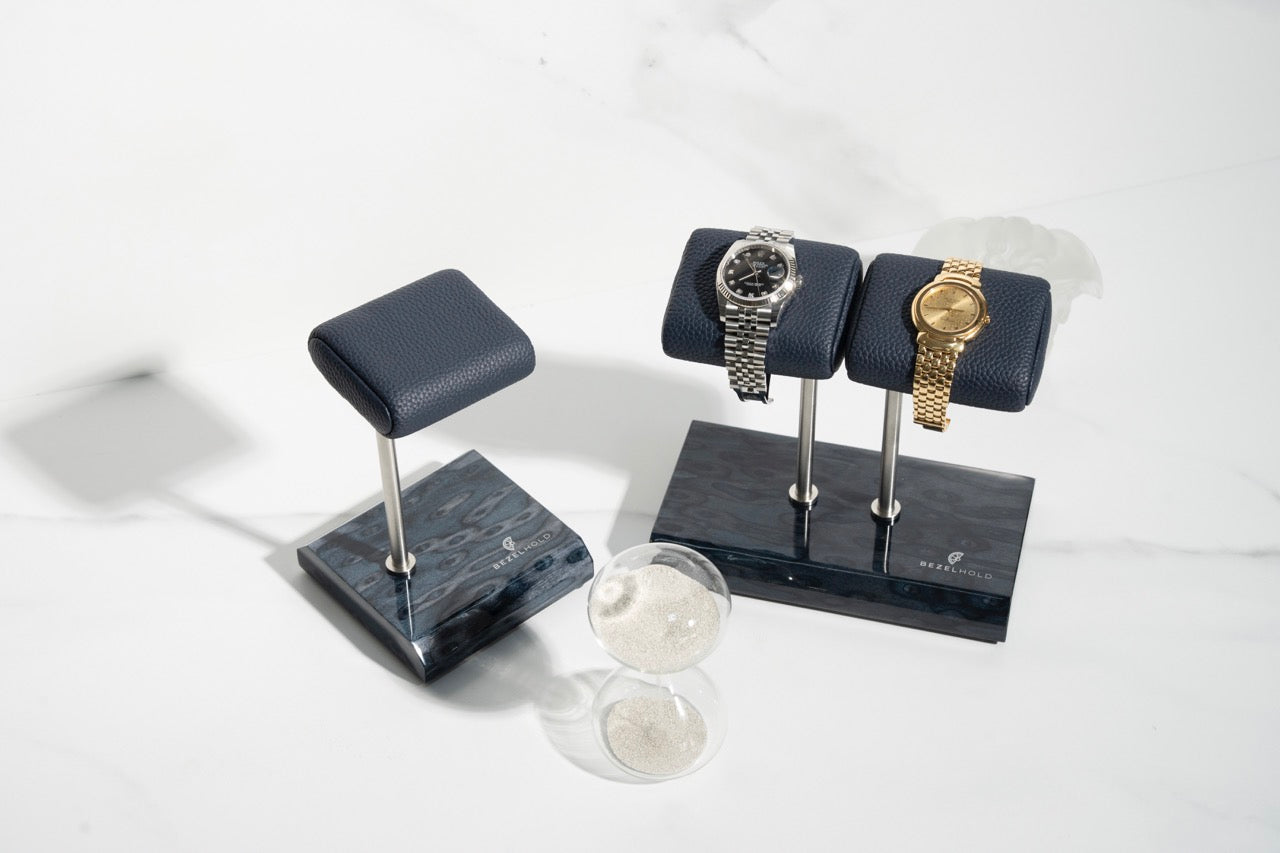 A beautiful canvas for the collector, The Solo is designed to display and protect your watches. With each detail thoughtfully refined, it truly is one of the most desirable accessories for enthusiasts. It features pebble grain leather pillows sourced from the finest tanneries, a high-gloss polished base, and matte silver stands.